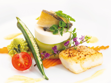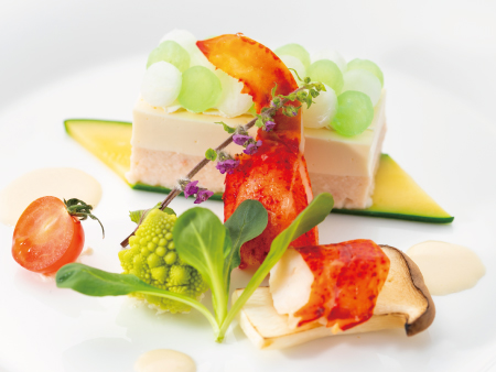 冬瓜のモザイク仕立てオマール海老のローストと共に