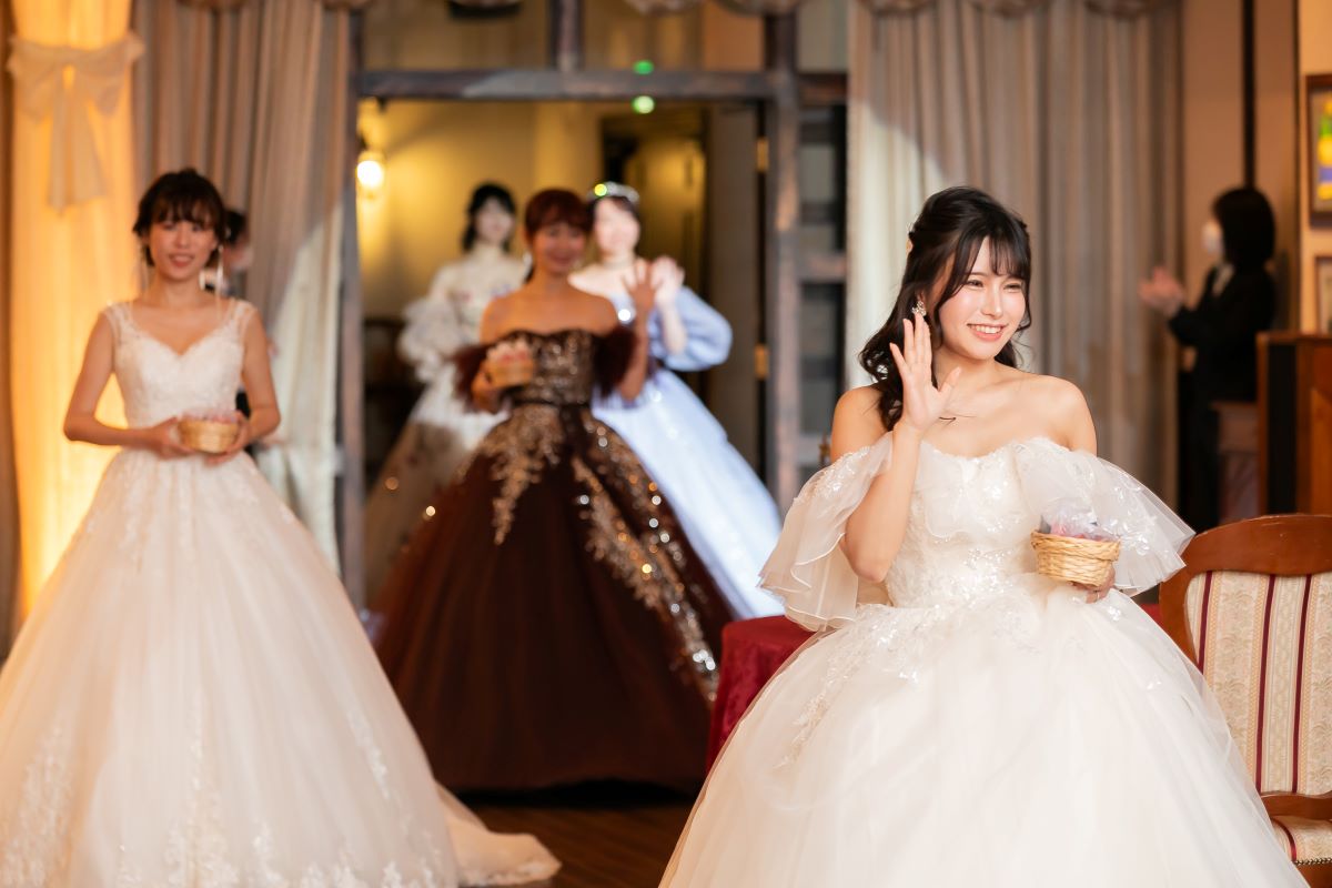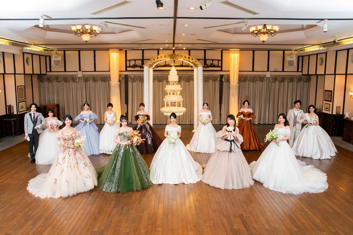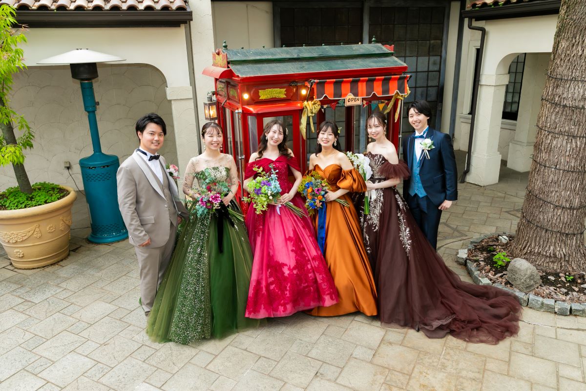 純白のウェディングドレスだけでなく トレンド感満載の色とりどりのドレスが登場します