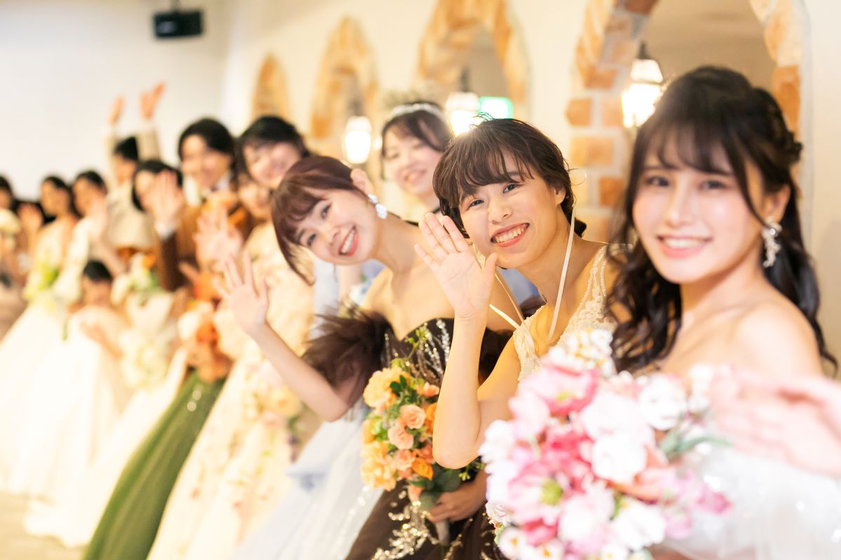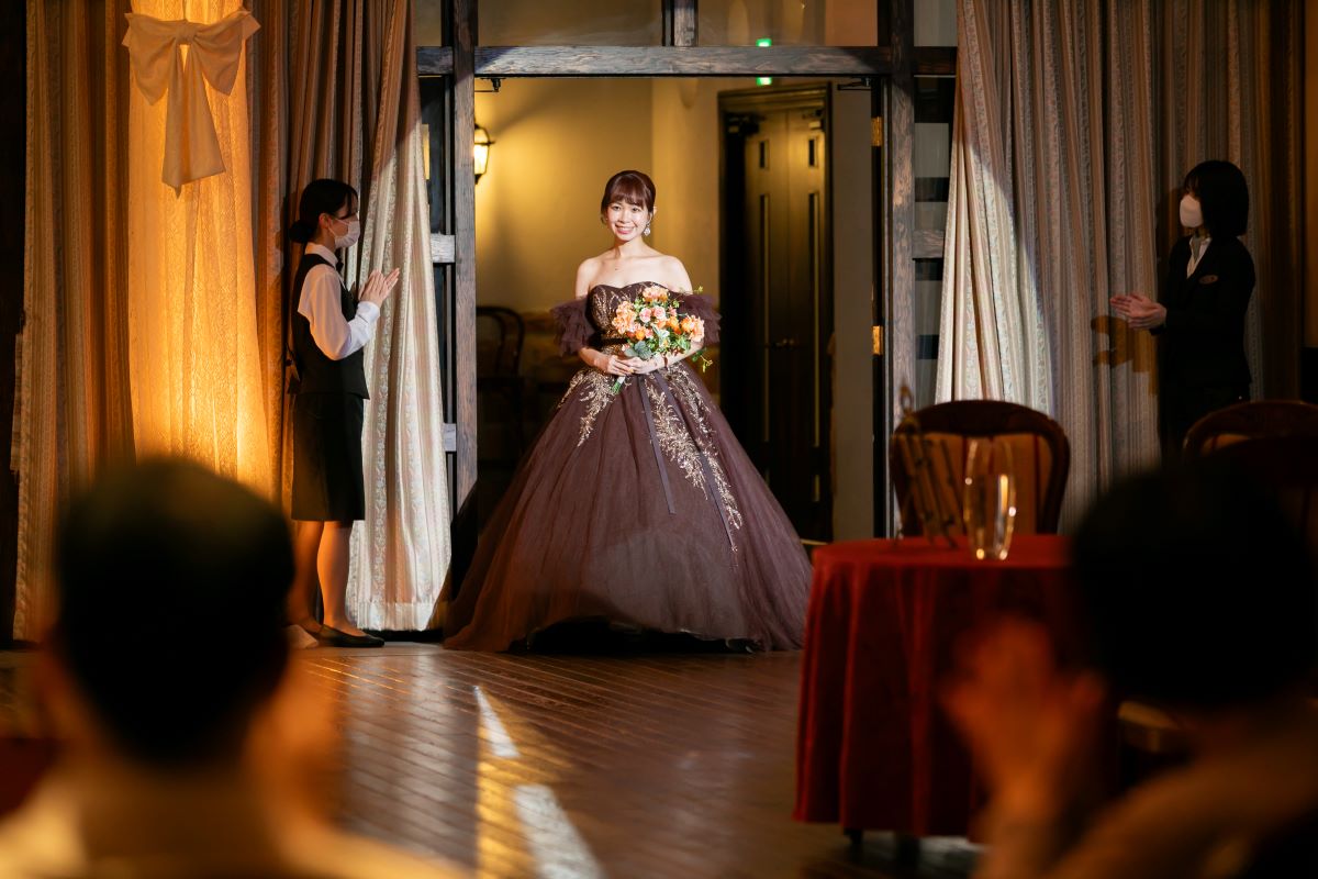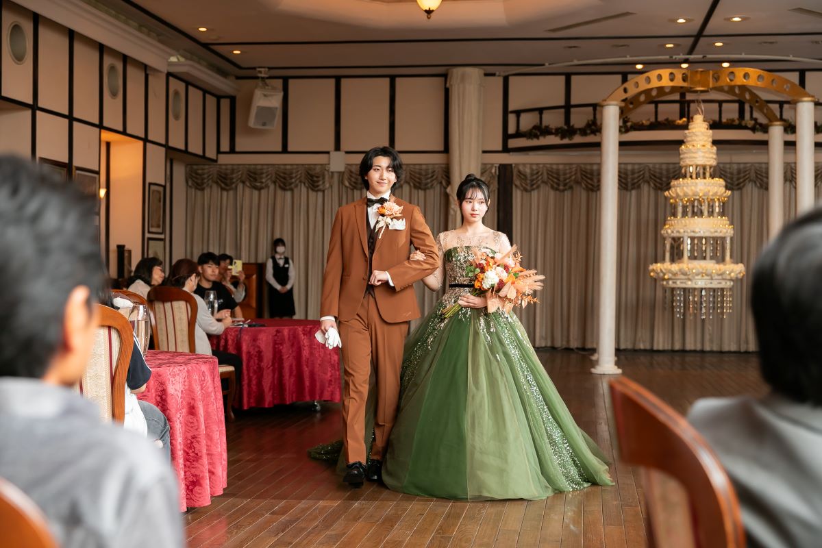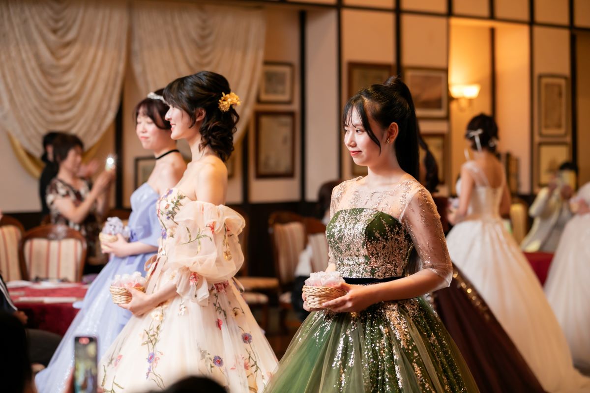 純白のウェディングドレスだけでなく トレンド感満載の色とりどりのドレスが登場します