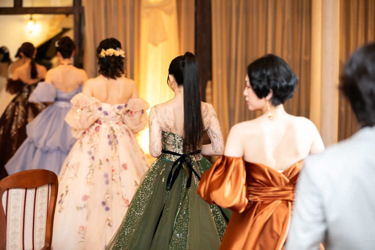 ドレスファッションショーで登場したドレスを実際に試着することができます